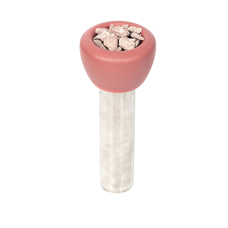 Металлическая колба устанавливается в каменках так, чтобы верхняя часть немного возвышалась над камнями для удобства заполнения водой и добавления ароматизатора.