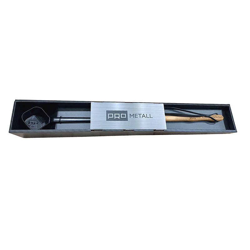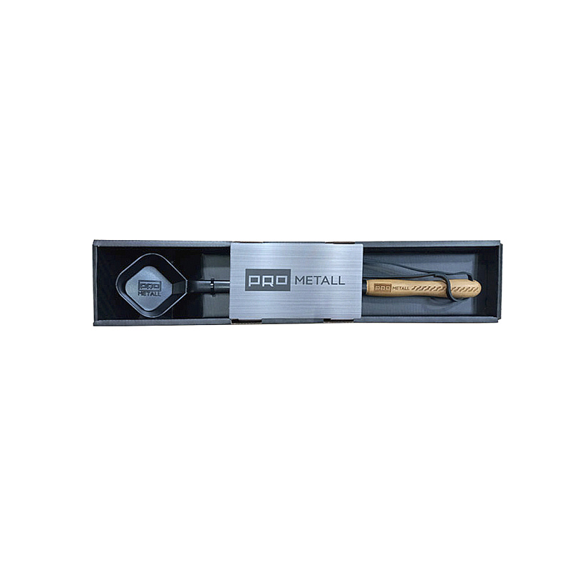Металлический ковш с удобной ручкой из натурального дерева и кожаной петлёй.