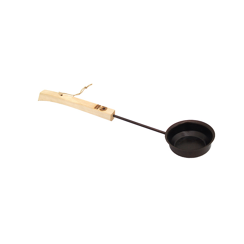Небольшой медный черпак с деревянной ручкой, незаменимый аксессуар в любой бане или сауне. Медная оксидированная чашка полностью исключает протекание.