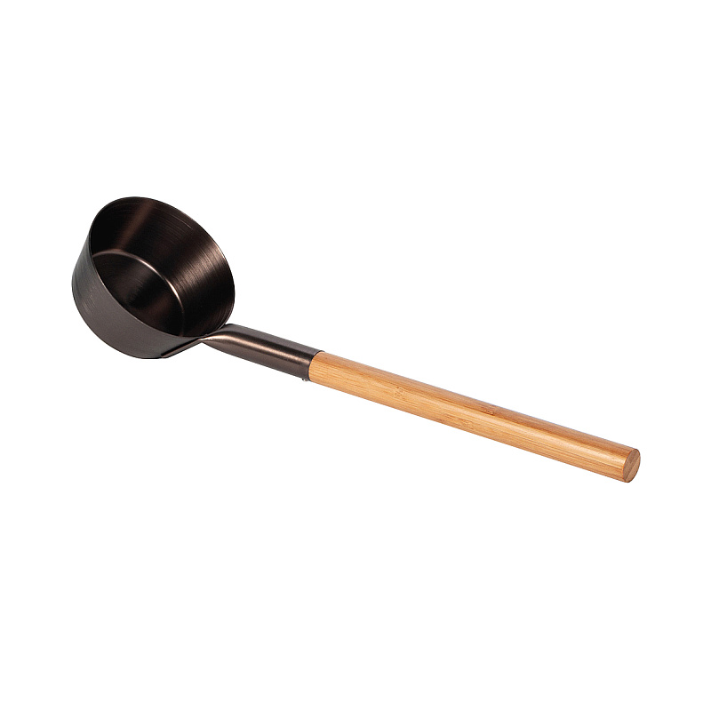 Стильный ковш из серии аксессуаров линейки Premium-Line c бамбуковой ручкой. Длина ковша 33см.