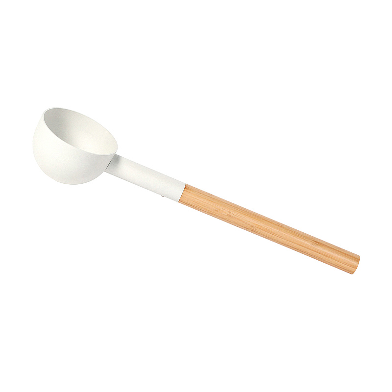 Стильный ковш из серии аксессуаров линейки Premium-Line c бамбуковой ручкой. Длина ковша 43см.