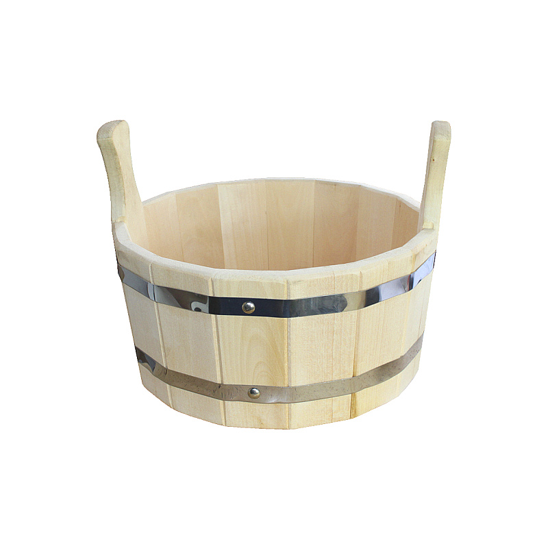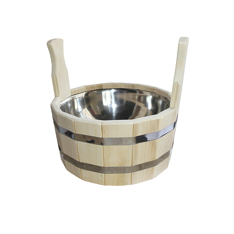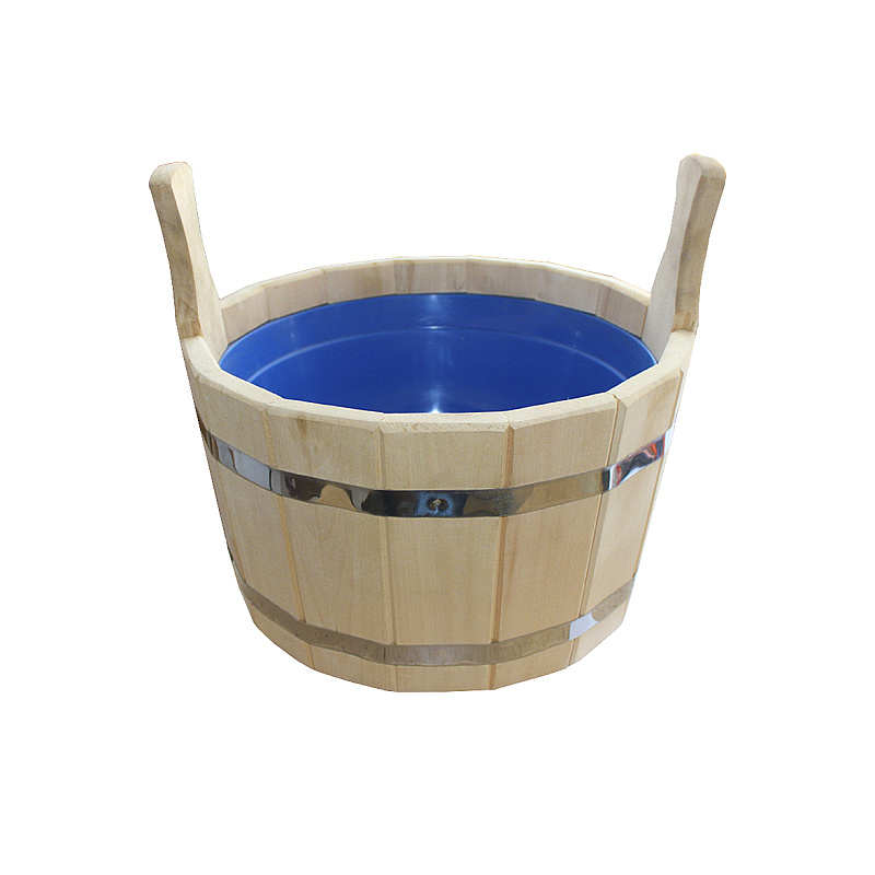 Шайка для бани изготовлена из массива липы с пластиковой или нержавеющей вставкой.
