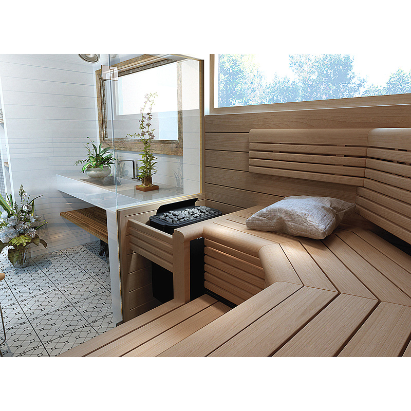 • Благодаря технологии BWT, вы можете наслаждаться сауной различными способами: испаряемая вода из встроенного бачка создает атмосферу при разных задаваемых температурах.
