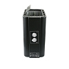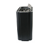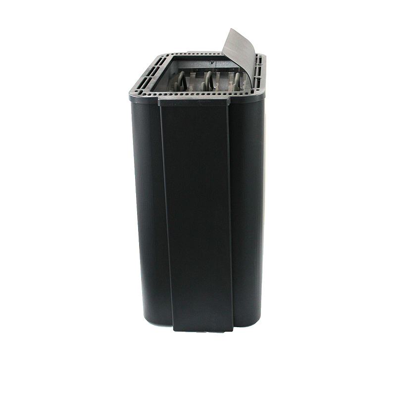 Сочетание насыщенного черного цвета, закругленные углы и паро-отражающий козырёк определяют стиль каменки.