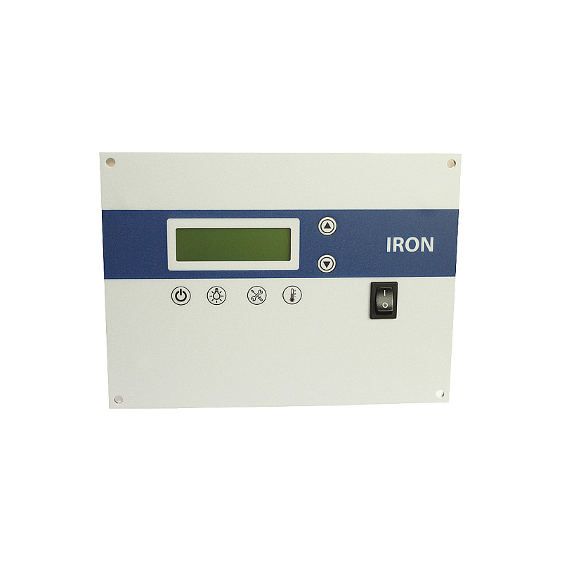 Iron Control осуществляет управление настройками всех функциональных возможностей домашней сауны, а именно: температурой в сауне, освещением и вентиляцией. При этом, навигация и меню интуитивно просты и понятны для абсолютно любого человека. Выбранные настройки и параметры отображаются на LCD дисплее. Пульт разработан и протестирован в Германии, и отвечает высоким европейским стандартам качества. Толщина пульта всего 60 мм, что позволяет осуществлять встроенный монтаж.