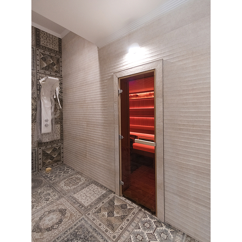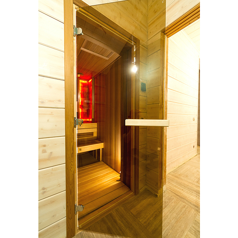 Стеклянные двери для сауны, в отличие от деревянных, не подвержены рассыханию или изменению своей геометрии из-за постоянного изменения температуры и влажности.