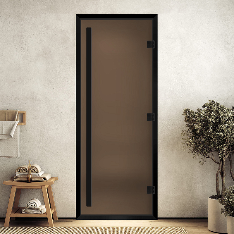 DoorWood Дверь "Хамам престиж бронза матовая" в черном профиле
