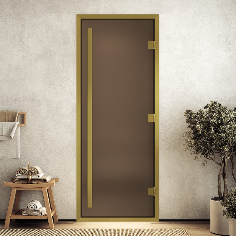 DoorWood Дверь "Хамам престиж бронза матовая" в золотом профиле