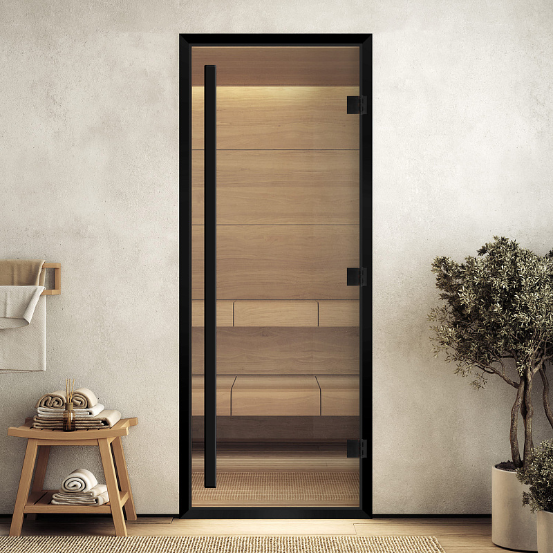 DoorWood Дверь "Хамам престиж прозрачное" в черном профиле
