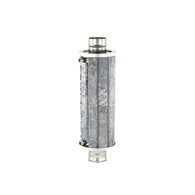 Применяется как стартовый участок дымохода, использует дымовые газы для непрерывного подогрева воды в системе горячего водоснабжения. Плиты из природного камня носят декоративно-эстетическую функцию.