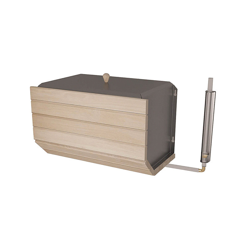 Бак изготавливается из жаропрочной нержавеющей стали AISI 439 толщиной 1 мм и обшивается снаружи декоративными обработанными деревянными планками. Бак имеет съемную крышку и три вваренных в дно ½ дюйма штуцера.