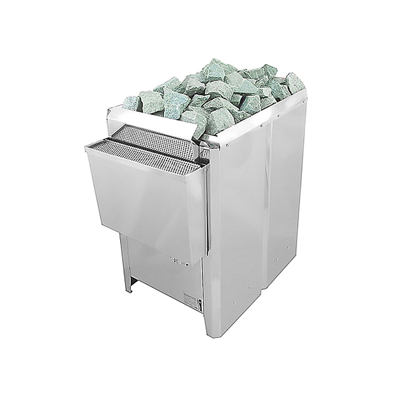 Большое количество камней, расположенных сверху печи, нагреваются до температуры парообразования, что позволяет плескать на горячие камни и наслаждаться мягким и влажным паром. При температуре 60-70°C создается влажный умеренный пар – так называемый "русской бани" эффект. В отличие от других печей, в ней можно использовать любую воду без предварительной подготовки. При более высоких температурах – 100-115°C, пар, вырабатываемый испарителем, подвергается осушению, превращаясь в мелкодисперсный, качественный и полезный для здоровья пар. В заливную емкость можно добавлять ароматизаторы и травы, которые сделают пребывание в сауне особенно комфортным и приятным, а также снимут усталость и помогут расслабиться.