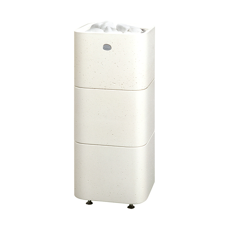 Квадратный нагреватель Kuura 2 отличается приглушенной поверхностью благодаря использованию литого камня – материала, ранее не применяемого в электрокаменках. Его цвет и дизайн гармонично сочетаются с различными интерьерами сауны и бань.