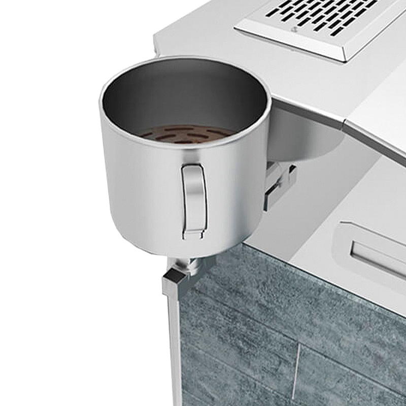 При выходе печи в рабочий режим в емкость укладывается ароматизирующий материал (свежая трава, сухие брикеты и т.д.). Емкость устанавливается на свое штатное место, кран открывается и парильное помещение наполняется любимым Вашим ароматам.