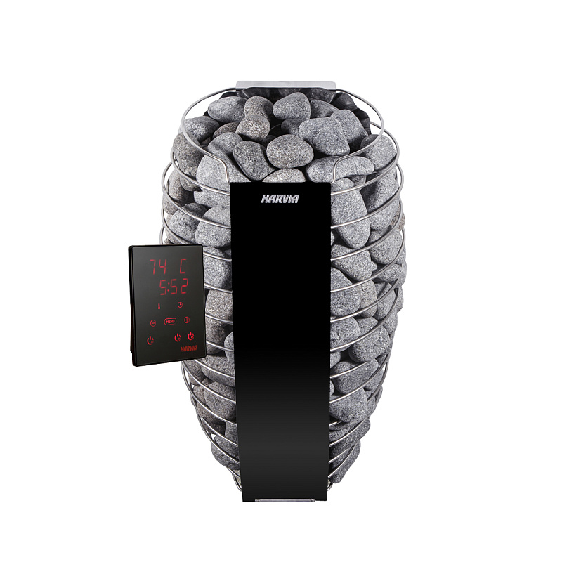 HARVIA Spirit – это гармоничное сочетание современного дизайна и передовых технологий. Тонкий корпус печи в сочетании с округлыми камнями (60 кг) придает каменке легкость и утонченность. Овальная форма печи естественна и напоминает натуральный камень в изящном обрамлении.