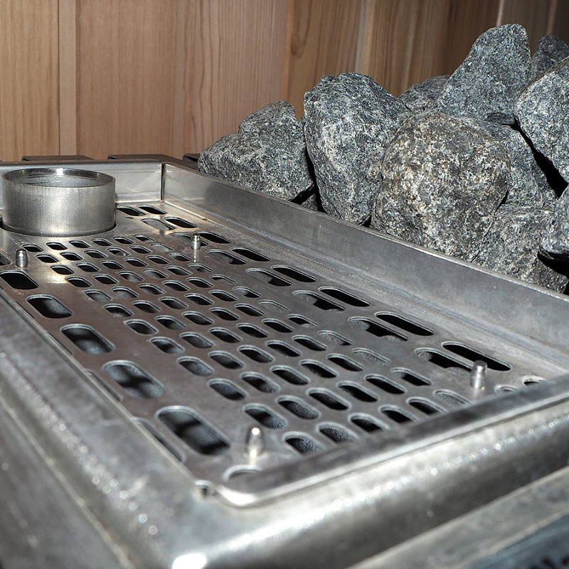 Отсек для камней из нержавеющей стали изготовлен методом сварки в заводских условиях, что исключает его прогорание. Камни быстро нагреваются, что обеспечивает эффективный отвод тепла из нагревателя.