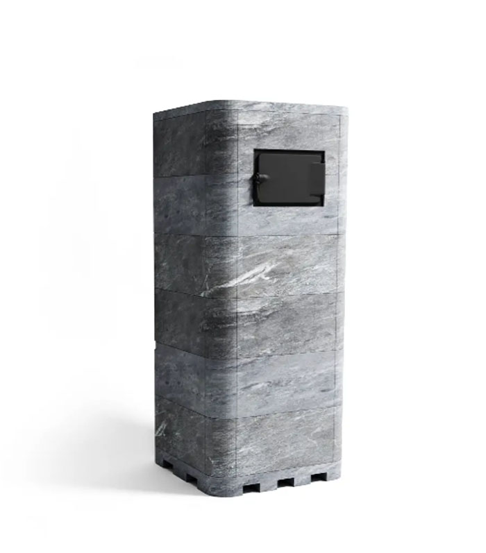 - Эстетичный дизайн. Радиусные углы придают печи современный и стильный вид. Облицовка из натурального камня не только украшает печь, но и дополнительно аккумулирует тепло.