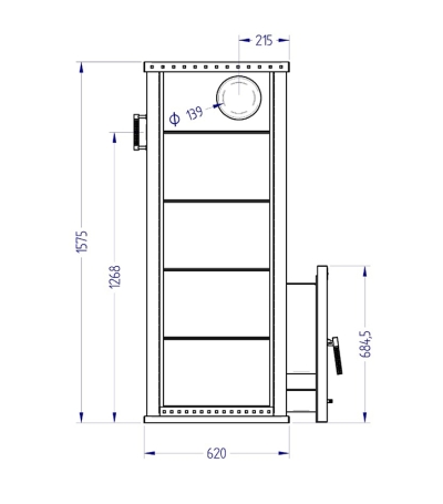 - Подключение к дымоходу: с трех сторон: справа, слева, сверху
