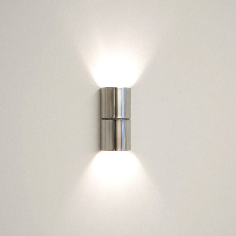 Настенный светильник SX направляет свет вверх и вниз. Светильник представлен в двух вариантах исполнения: из полированной нержавеющей стали или позолоченной латуни.
