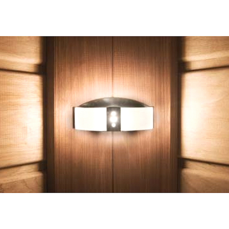 Светильник Маяк настенного монтажа устанавливается на конце оптического волокна. Изготовлен из полированной нержавеющей стали и матового стекла.