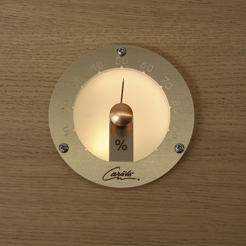 Круглый гигрометр с матовым стеклом и тремя различными по цвету корпусами. Подсвечивается одним волокном диаметром 2-4 мм или светодиодом.