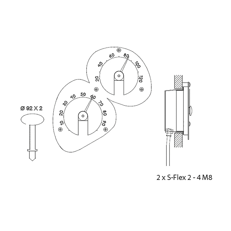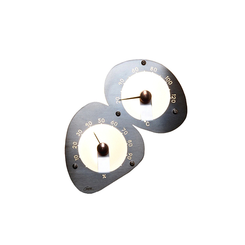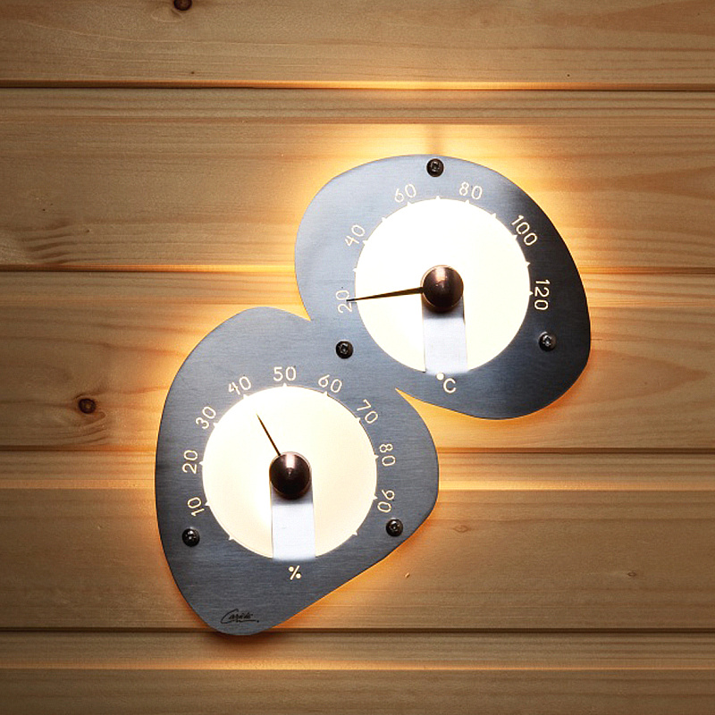 Термометр-гигрометр для сауны, форма которого напоминает камни на берегу моря. Высота термо-гигрометра 220 мм, ширина 205 мм и глубина ниши для установки 40 мм. Выступает над поверхностью обшивки на 20 мм. Крепится к стене пятью винтами, входящими в комплект.