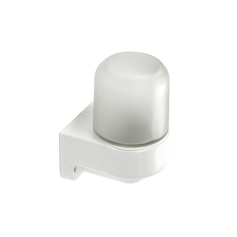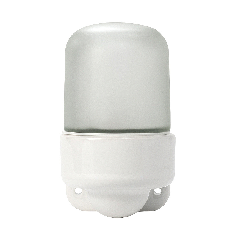 Светильник Linder обладает высоким уровнем влагозащиты IP54, а его корпус сделан из керамики и матированного стекла, соединенных между собой резьбовым соединением через силиконовый уплотнитель.
