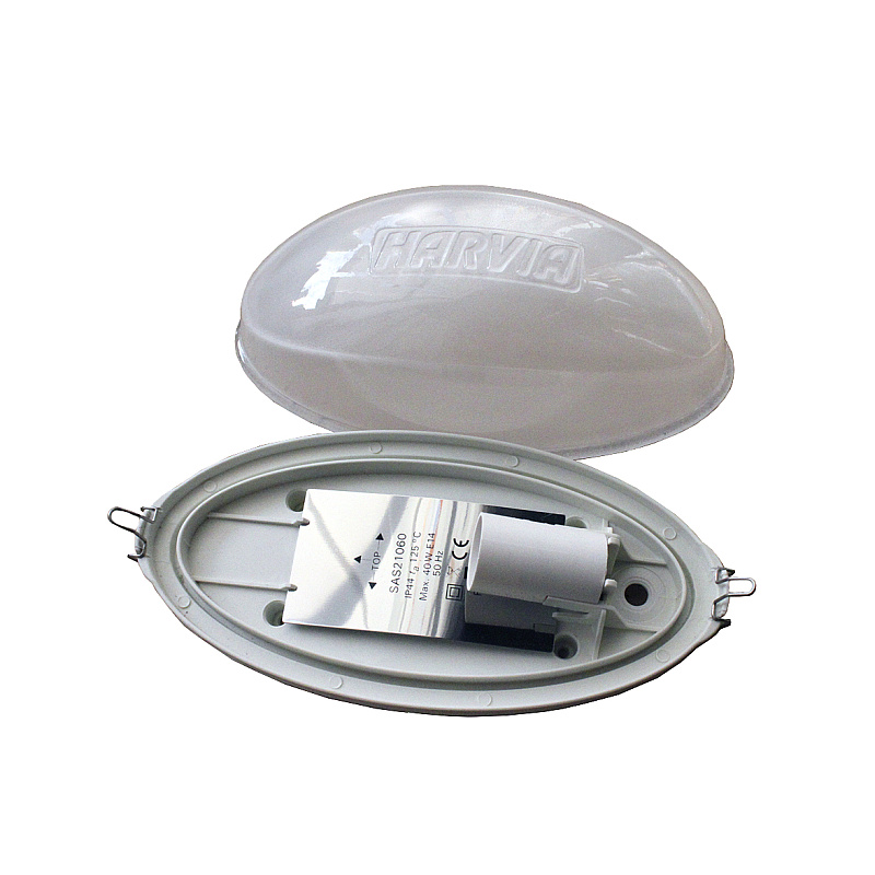 Светильник Harvia относится к традиционному освещению с использованием лампы накаливания не более 40Вт под патрон Е14. Уровень защиты IP44. Совместим со всеми видами абажуров.