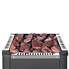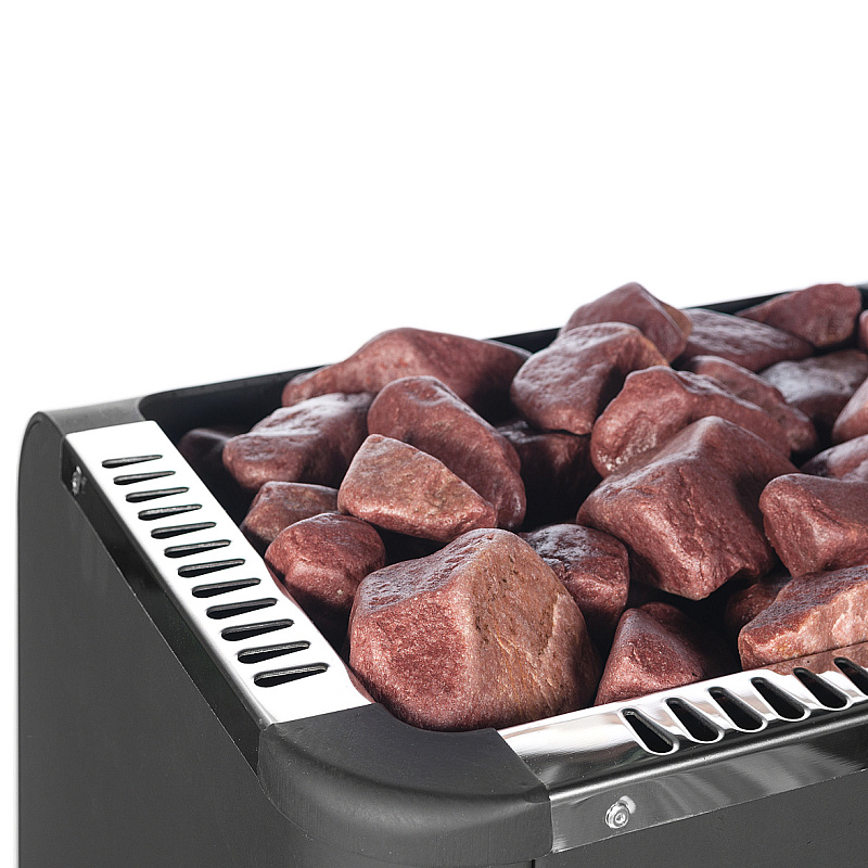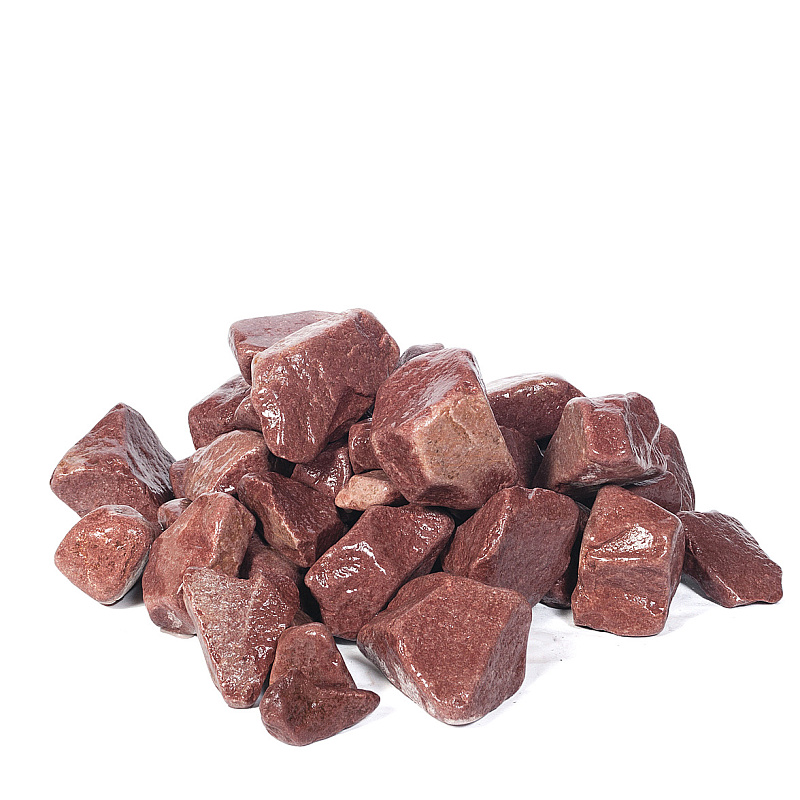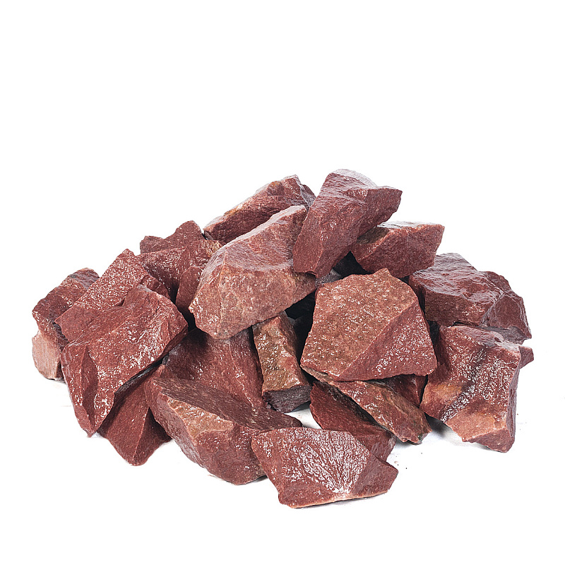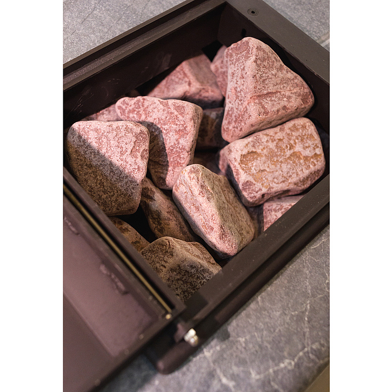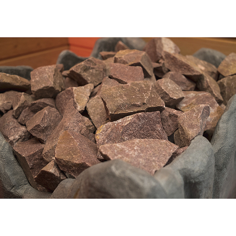 Малиновый кварцит – экологический чистый, долговечный и необычайно прочный материал. Данный минерал состоит из кварца более чем на 95%. Редчайший и дорогой минерал, добывается только в Карелии. Имеет такие свойства, как значительная теплоемкость и большая твердость, благодаря чему создает мягкий приятный пар и продолжительное время поддерживает высокую температуру. Выдерживает температуру до 1600 градусов, поэтому является подходящим материалом для каменок.