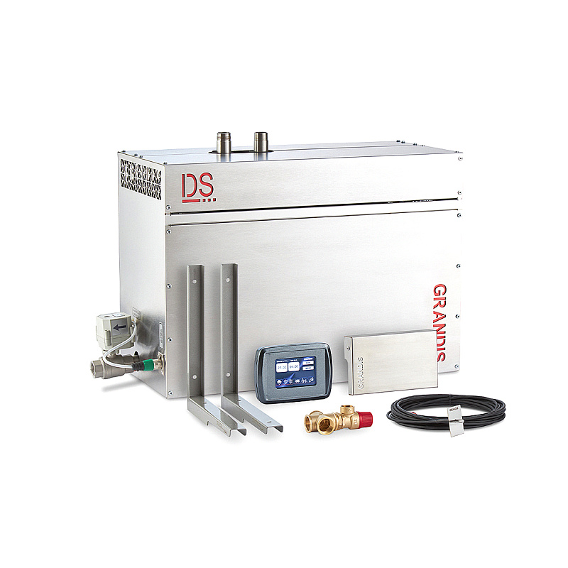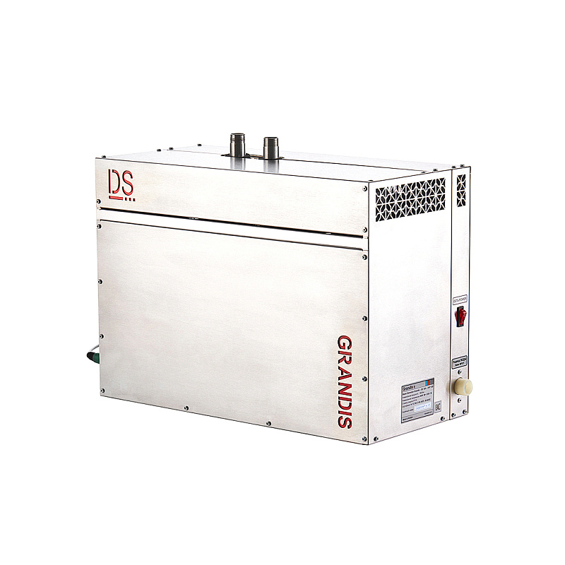 Парогенераторы Grandis DS предназначены для эксплуатации как в домашних SPA, так и в общественных хамамах. Бойлер парогенератора изготовлен из нержавеющей стали AISI 304 толщиной 1,5мм, и имеет гидродинамическую форму, благодаря чему остатки накипи гарантированно смываются при очистке. Благодаря встроенному в бойлер сепаратору, который фильтрует пар от воды, можем насладится чистым и деминерализованным паром в хамаме.