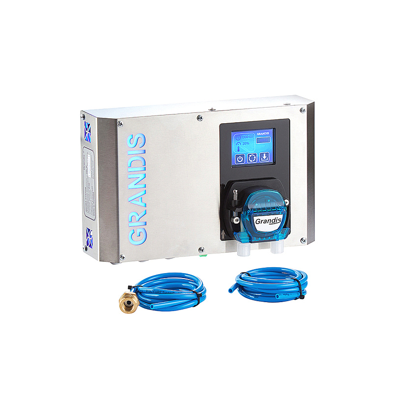 Система Grandis AROMA предназначена для подачи ароматизированной жидкости, в систему паропровода, идущий от парогенератора к парильне. Дозирующий насос Grandis AROMA на основе высокоточной перистальтической системы в паре с мощным шаговым приводом работает в трех режимах: USER – ручной, AUTO – автоматический, REVERS – обратный режим В ручном режиме производится заправка системы, после чего дозирующий насос переводится в режим AUTO. В автоматическом режиме интервал и дозировки выбираем на пульте управления парогенератора.