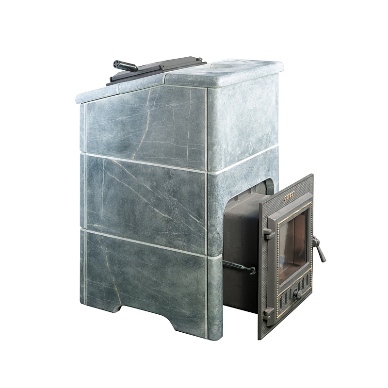 Для решения этой задачи мы рекомендуем применять облицовки закрытого типа, которые позволяют хорошо раскалить камни в закрытом объеме (прибавка около 100 градусов) и управлять температурой в парной открыванием дверцы. При этом тепло излучаемое от талькомагнезита гораздо мягче и комфортнее чем от раскаленного металла. На растопку печи в облицовке вы затратите 1,5-2 часа, но даже после прогорания дров можно будет на протяжении 4-5 часов принимать банные процедуры. Талькомагнезит уникальный по своей природе камень, нагреваясь, он очень медленно остывает, тем самым поддерживая температуру в парной, а камни при этом охлаждаются существенно меньше, нежели в открытых печах. Мы используем в производстве облицовок талькомагнезит от компании Tulikivi добытый в Финляндии.