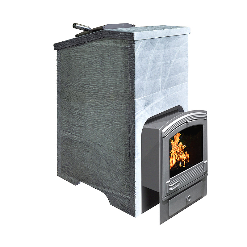 Для решения этой задачи мы рекомендуем применять облицовки закрытого типа, которые позволяют хорошо раскалить камни в закрытом объеме (прибавка около 100 градусов) и управлять температурой в парной открыванием дверцы. При этом тепло излучаемое от талькомагнезита гораздо мягче и комфортнее чем от раскаленного металла. На растопку печи в облицовке вы затратите 1,5-2 часа, но даже после прогорания дров можно будет на протяжении 4-5 часов принимать банные процедуры. Талькомагнезит уникальный по своей природе камень, нагреваясь, он очень медленно остывает, тем самым поддерживая температуру в парной, а камни при этом охлаждаются существенно меньше, нежели в открытых печах. Мы используем в производстве облицовок талькомагнезит от компании Tulikivi добытый в Финляндии.