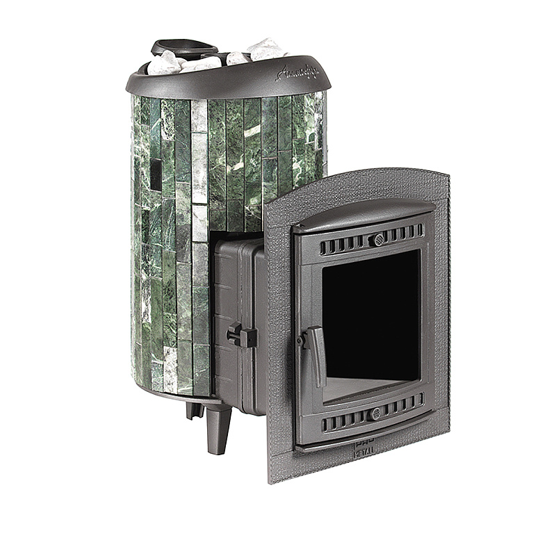 Печь отлита из цельного чугуна с каменкой из нержавеющей стали AISI 439
