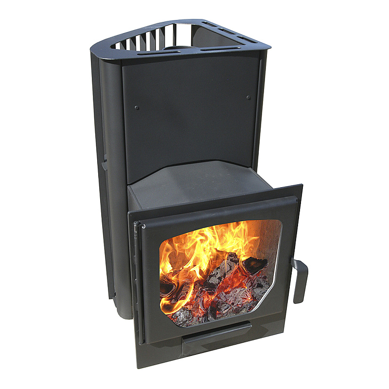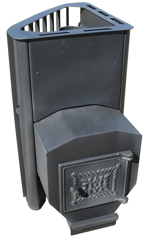 Печь аккуратно устанавливается в углу парной и занимает немного места.