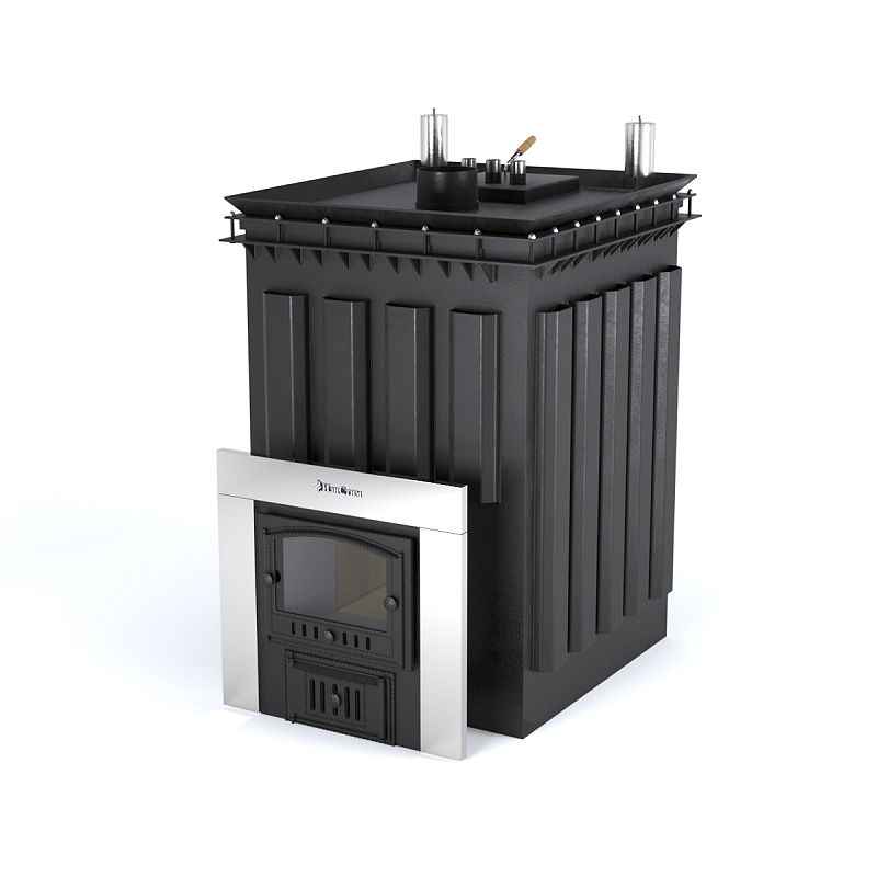 Взгляните на нее внимательно, кроме дверцы для закидывания дров вы не увидете сходства с другими печами. А где же камни, спросите Вы? Печи для русской бани ИзиСтим имеют внутреннюю закладку камней и раскаляются они до 500 градусов.