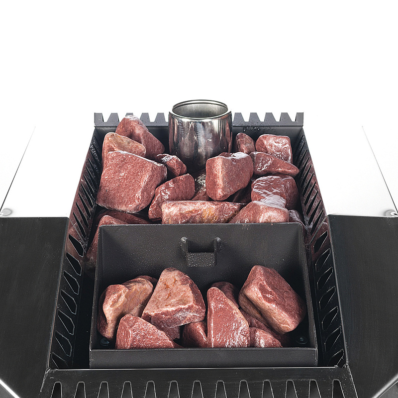 Опция предназначена для создания закрытой каменки. Закрывая сверху камни, модуль герметизирует каменку, формируя внутри нее высокую температуру. Для получения пара вода заливается с помощью откидного люка или дополнительной опции – парообразователя.