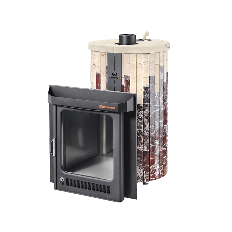 Эти печи отличаются от традиционных. Эффективность горения начинается с закладки дров и заканчивается получением пара. Особенность – подовое верхнее горение без колосника, которое обеспечивает максимальную передачу энергии от сгорающих дров и их минимальный расход. Одна закладка дров позволяет наслаждаться паром в течение 3 часов, а также обеспечивает чистоту стекла.