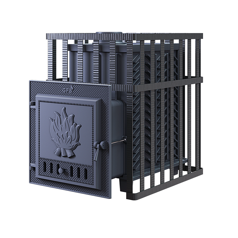 Модель Гефест ПБ-С-ЗК имеет углубленную "закрытую каменку", комплектуется глухой чугунной дверцей и сеткой для камней.
