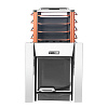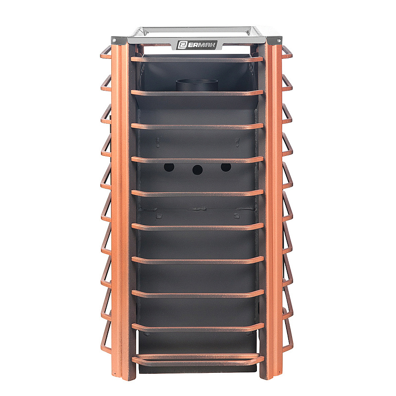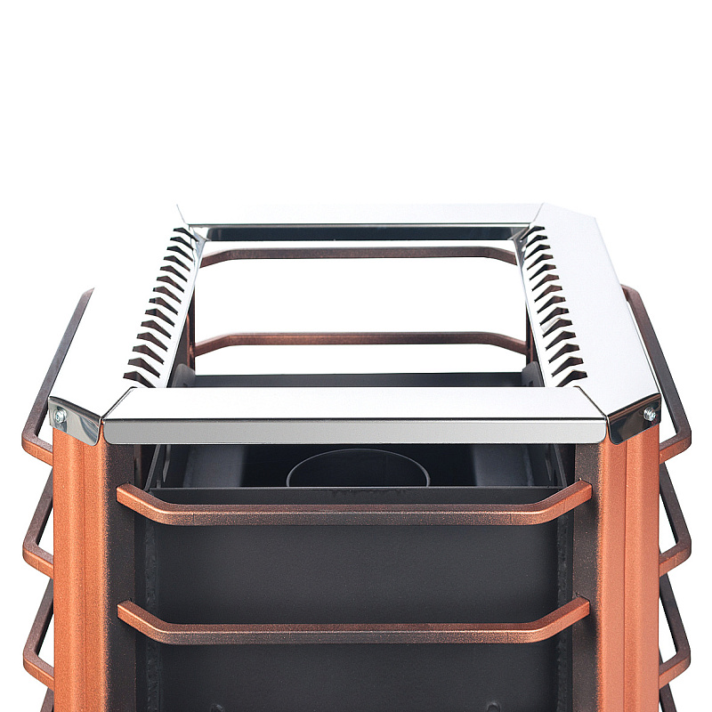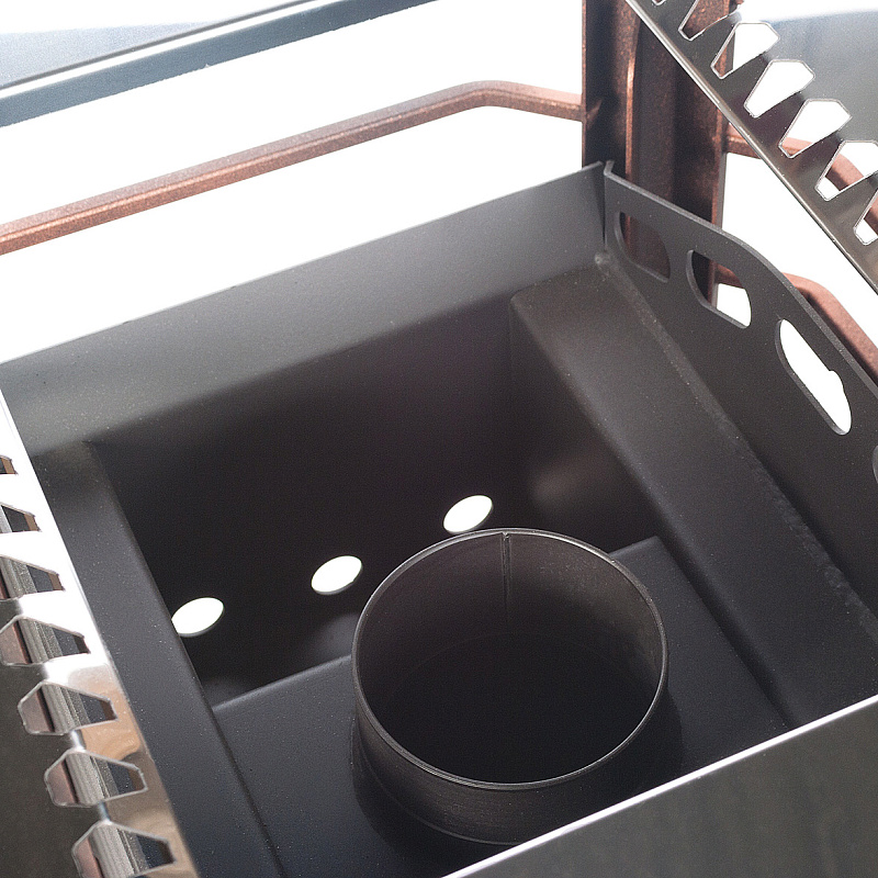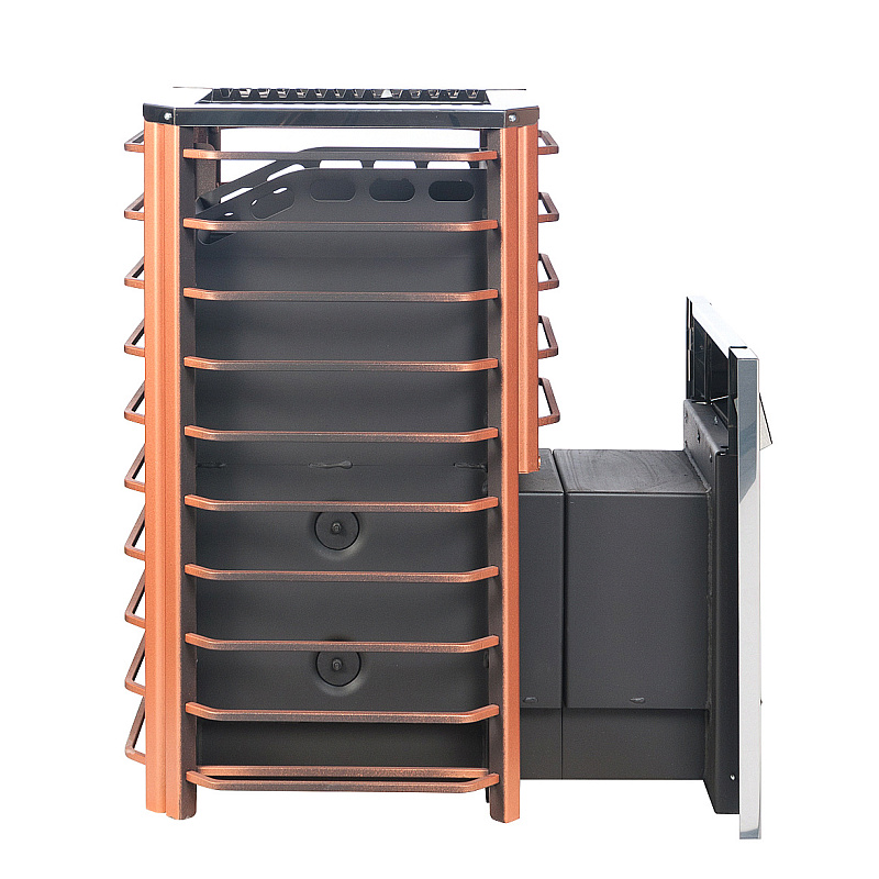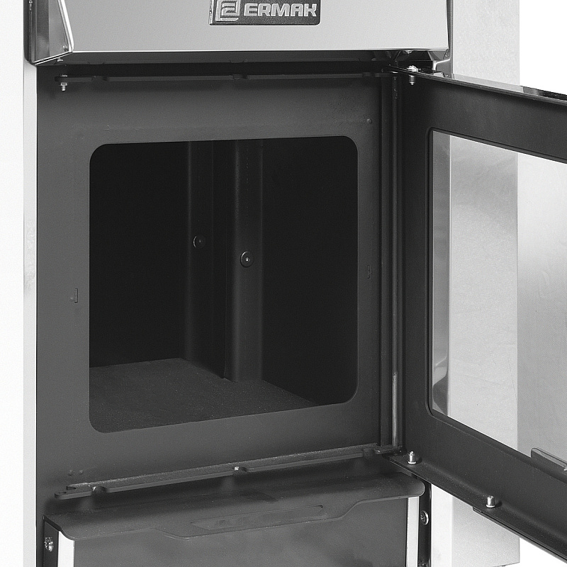 Банная печь с большой загрузкой камней, что обеспечивает длительную отдачу тепла. В качестве опций возможно установить теплообменник и парообразователь. Дверца с панорамным стеклом имеет возможность лево- и правостороннего открывания.