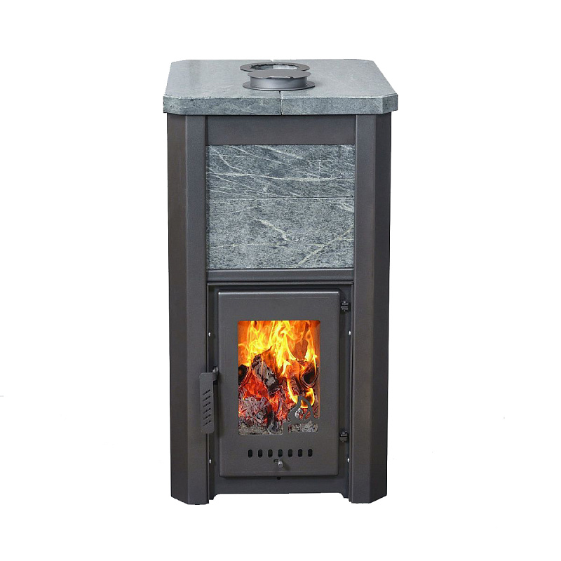Дровяная печь Варвара Сказка сочетает в себе привлекательный внешний вид и эффективную конвекционно-аккумулирующую печь, способную за короткое время прогреть помещение и длительное время поддерживать тепло. Печь оснащена закрытой каменкой с распределителем воды, за счет чего вода попадает на все участки каменного заряда. Дверь с панорамным жаропрочным стеклом позволяет насладиться неповторимой игрой огня.