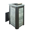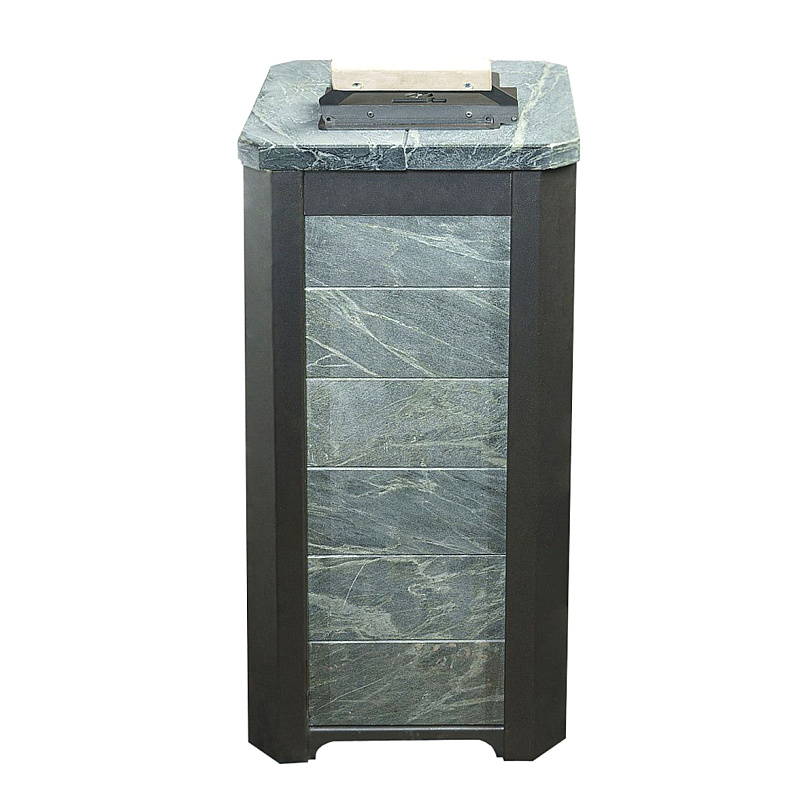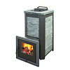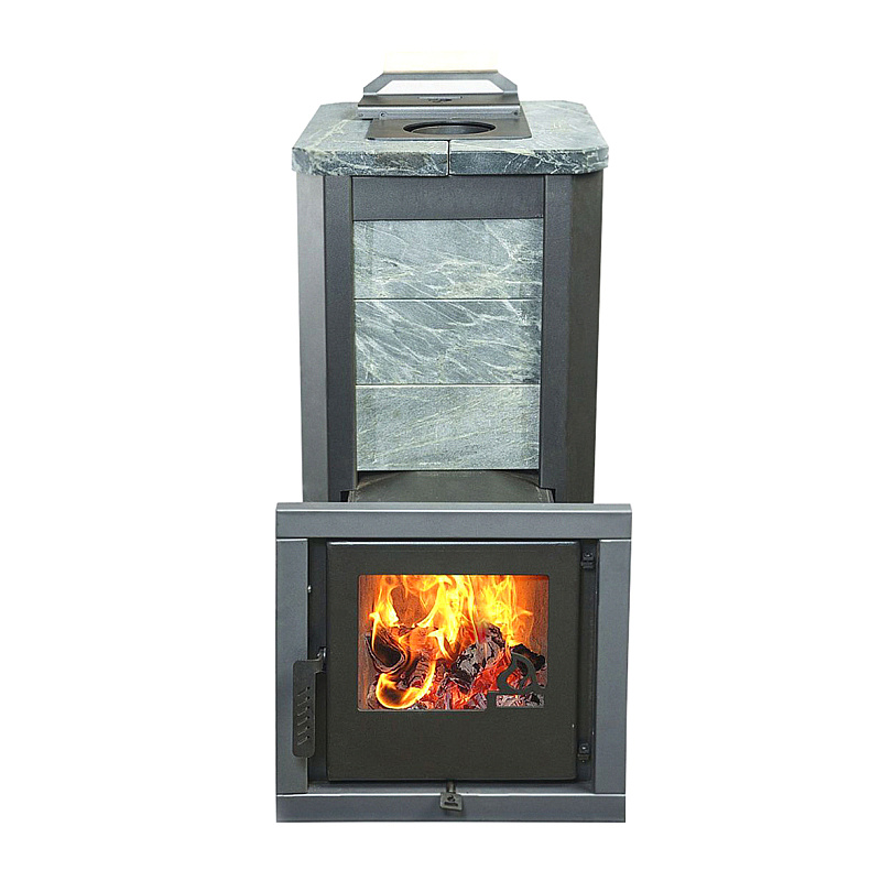 Обклад из природного теплоемкого камня талькохлорита или змеевика не позволяет сильно перегревать воздух в парной, а камни, закладываемые внутрь печи (около 70 кг), нагреваются сильнее чем в печах с открытой закладкой и на выходе получаем режим, приближенный к русской бане.