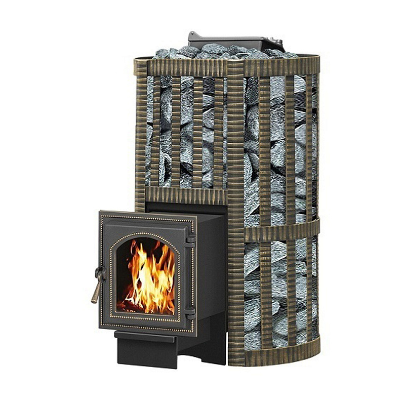 Емкость закрытой каменки стальная и вмещает в себя около 60 кг камней. Декоративный кожух «Ковка» изготовлен из металлической текстурированной полосы покрашенной термостойкой краской и патиной «Бронза».