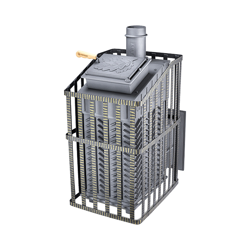Печь имеет полностью закрытую каменку. Одно из преимуществ печей Гефест ЗК Ураган — возможность модернизации за счет установки каменной облицовки, которая существенно упрощает создание режима русской бани. Замена сетки на облицовку проводится крайне быстро, без демонтажа печи и дымоходной системы. В основе Гефест Ураган ЗК — печь Гефест ЗК с усиленной каменкой большей массы, с единым углублением внутрь топки для дополнительной укладки заряда. Теплосъемные шипы с внутренней стороны топки в разы увеличивают площадь соприкосновения огня с каменкой и ускоряют передачу тепла, а также способствуют лучшему дожигу. Эти усовершенствования значительно повышают мощность парообразования печи и выдают большее количество пара при непрерывной поддаче воды. Заряд в такой каменке нагревается свыше 500 градусов. Конвекционные ребра на боковых стенках увеличивают теплопередачу от горящих дров к воздуху в парном помещении. В результате печь, несмотря на значительную толщину и массу, быстро выводит парную в требуемый режим.